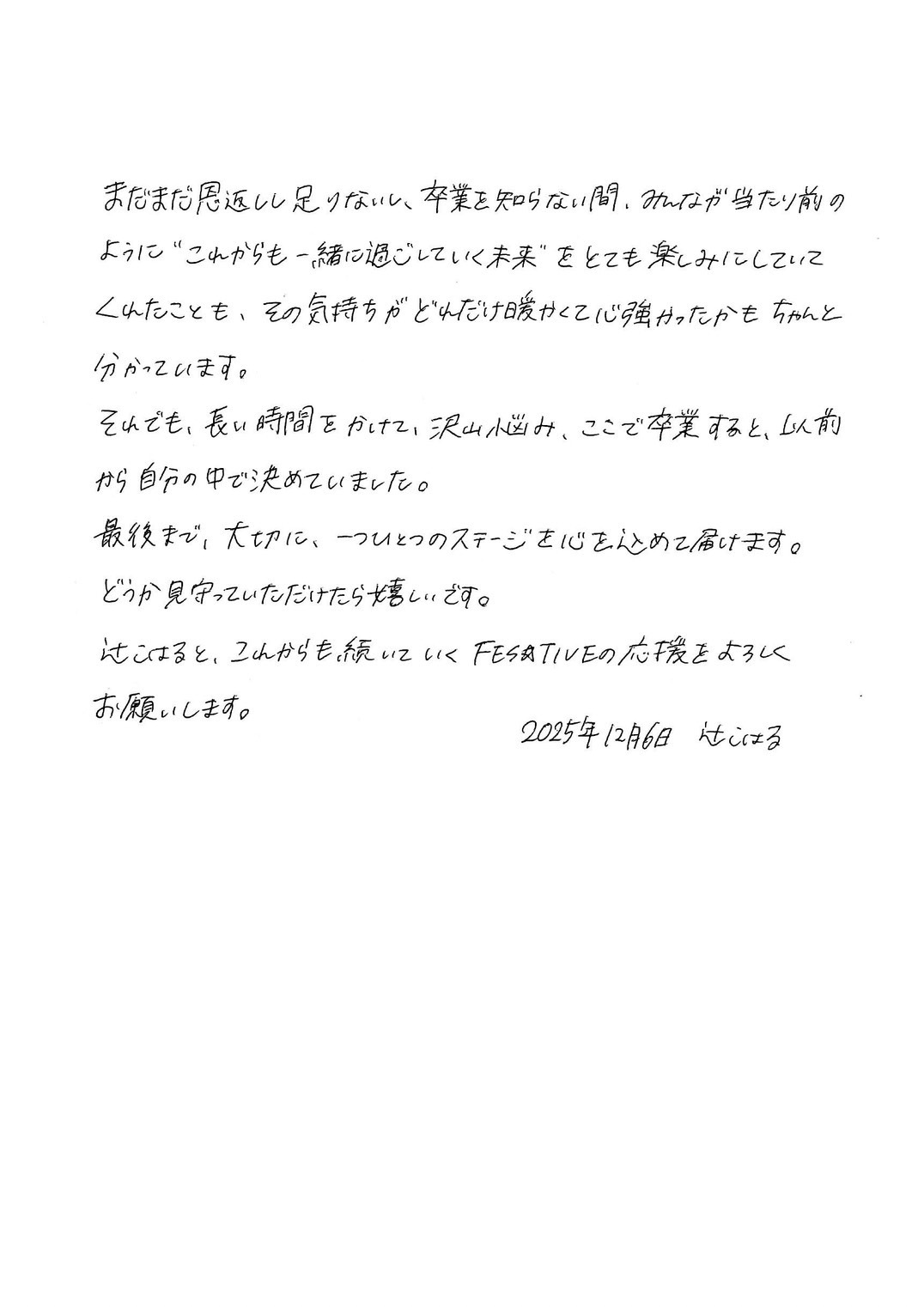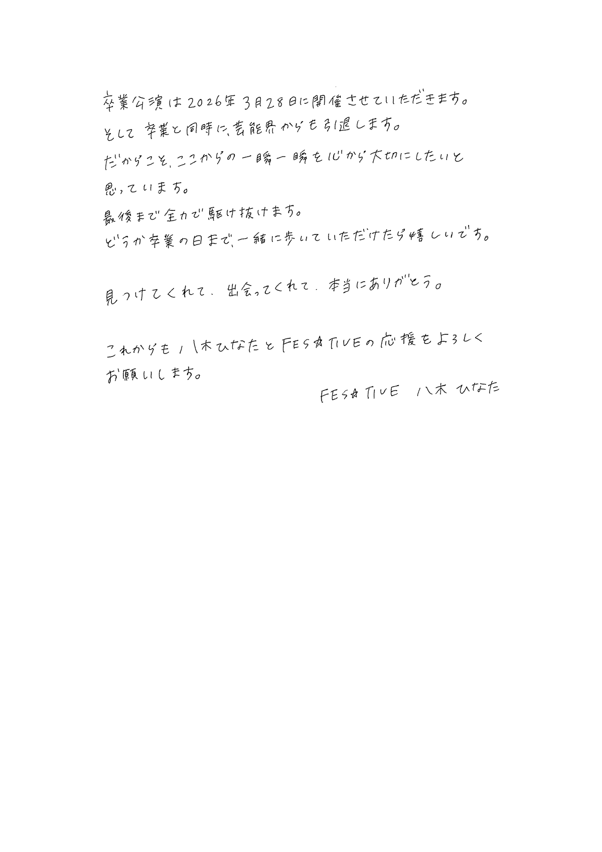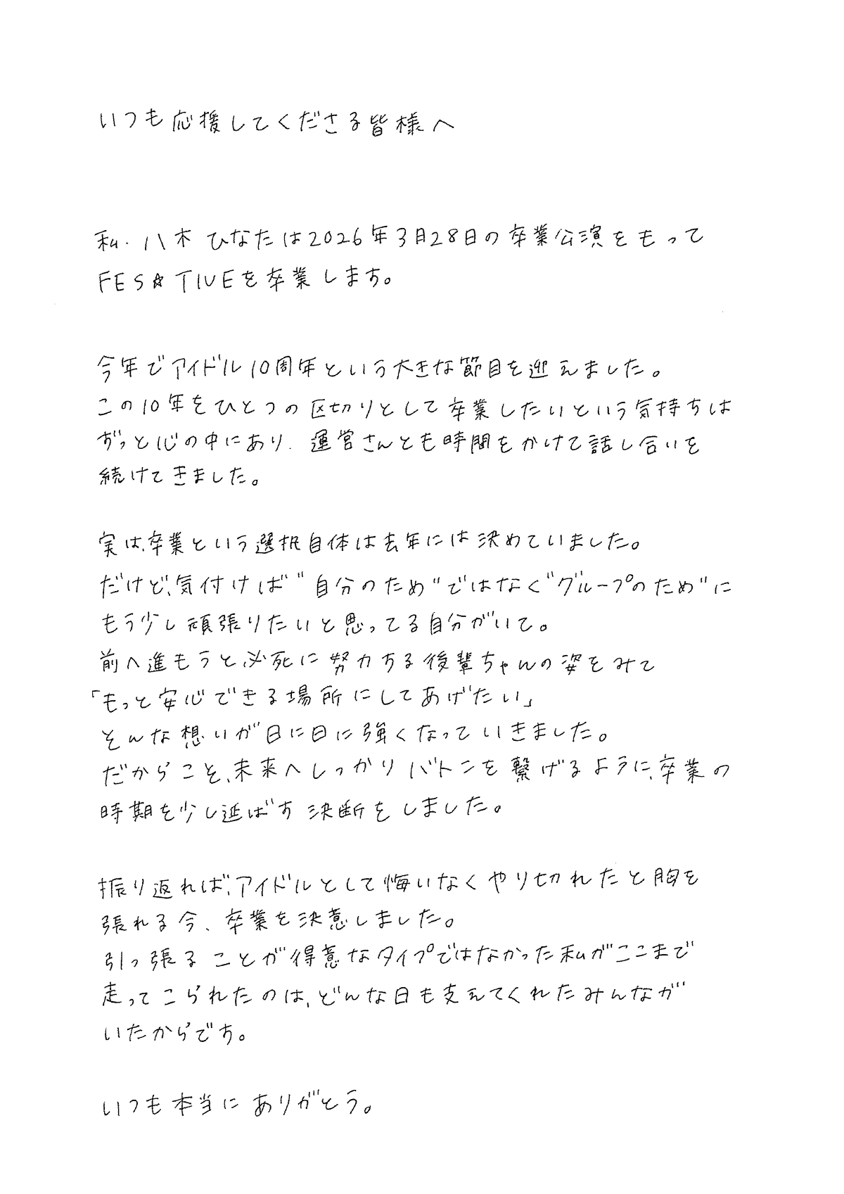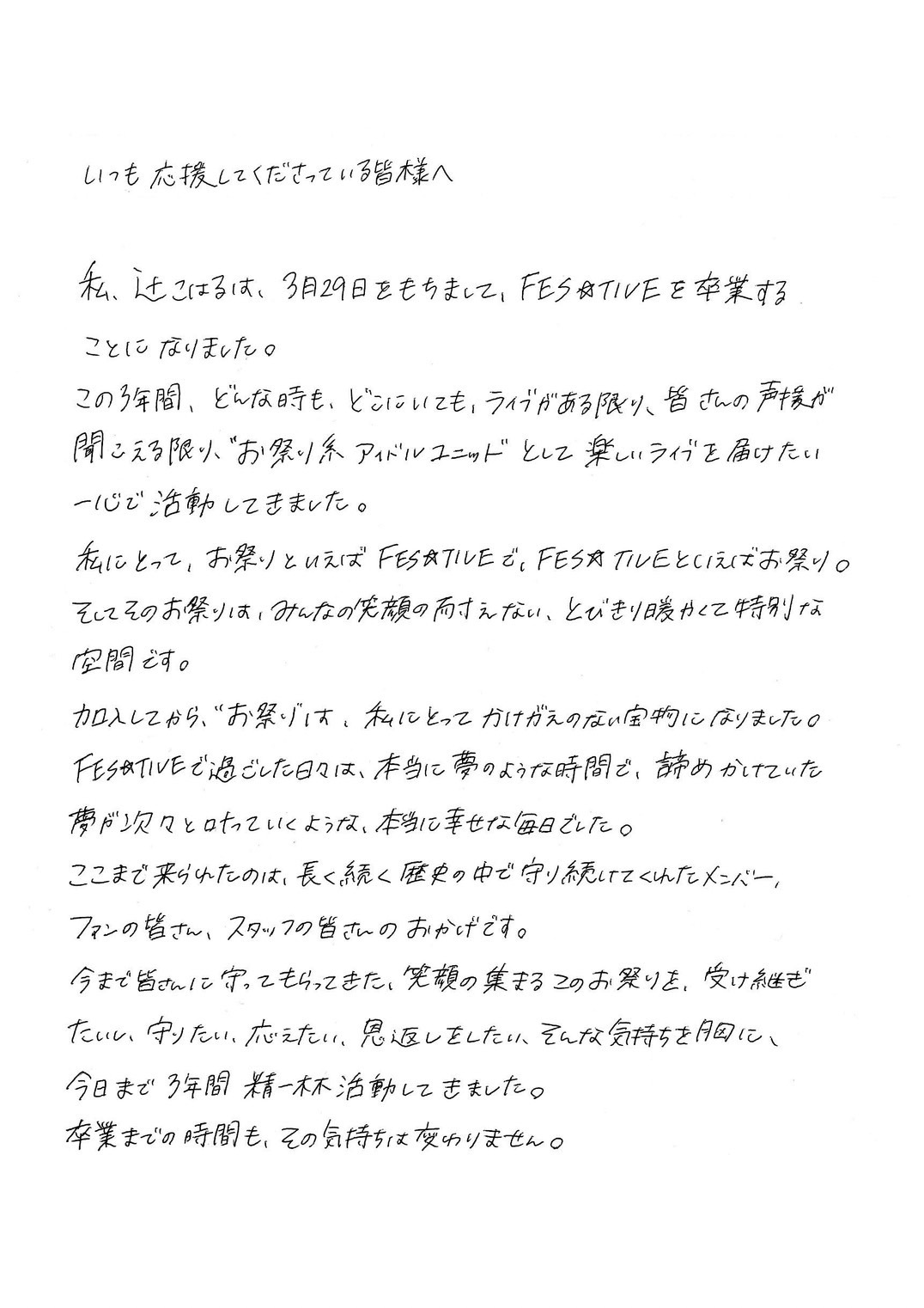 【メンバー卒業に関してのご案内及び本人、メンバーコメント】